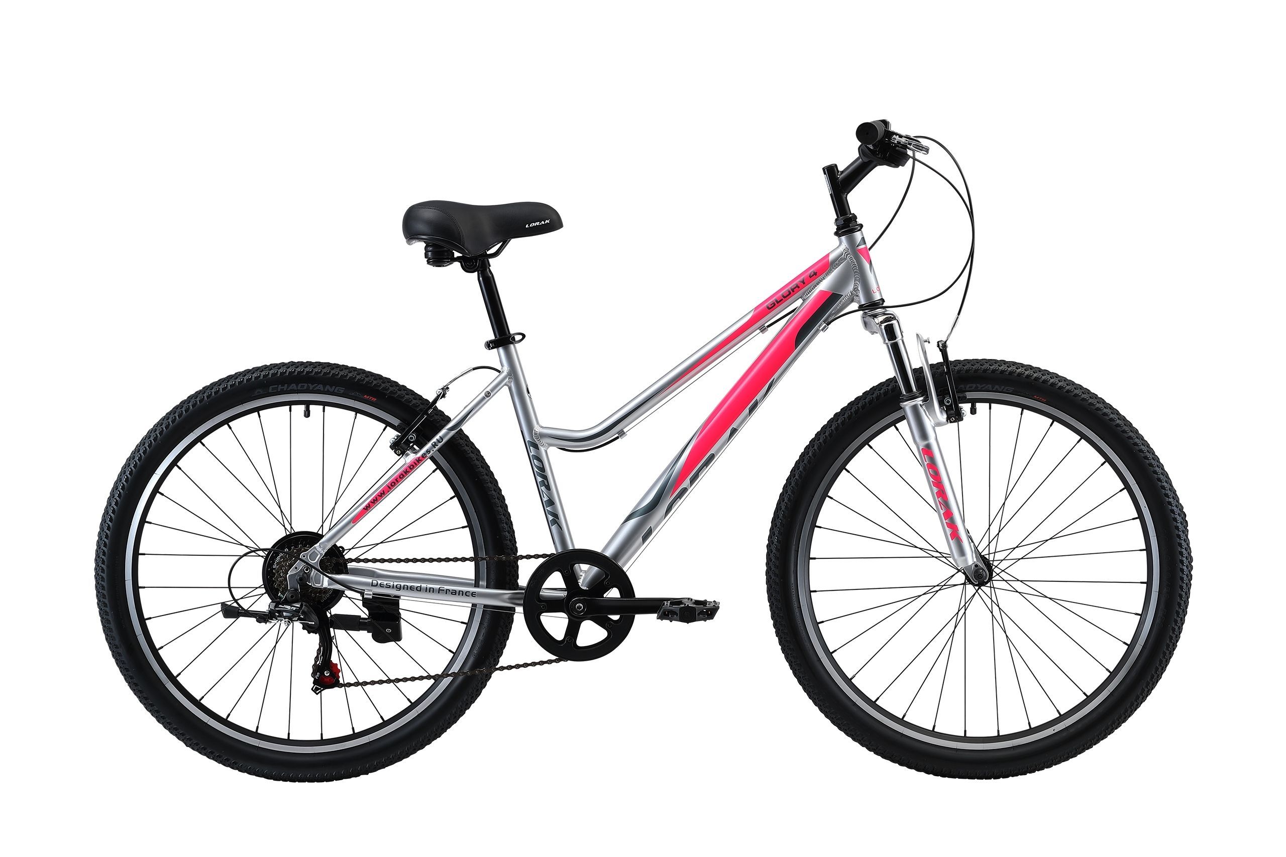 Бренд LORAK Модель 26 Glory 4 Год 2022 Серия GLORY Материал рамы Алюминий (Alloy) Тип вилки Амортизационная (пружина) Вилка/регулировки Lorak 225 steel 60 мм Диаметр колес 26" Резина Chaoyang 26"*2,1 Тормоза Ободные (V-brake) Уровень оборудования Начальный Шифтеры Microshift TS-38 Переключатель задний SHIMANO Tourney TZ500 Кассета SHIMANO Tourney TZ500 Цепь KMC C030 Количество скоростей 6 Пол/возраст Женский -